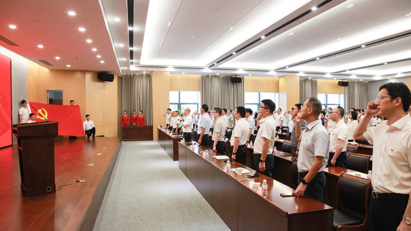會議還舉行了集體政治生日儀式,重溫入黨誓詞。全體黨員面向黨旗莊嚴宣誓,鏗鏘有力、擲地有聲的誓詞,感召著每一位黨員牢記囑托、感恩奮進,激勵著在場所有人團結奮斗、守正創新。